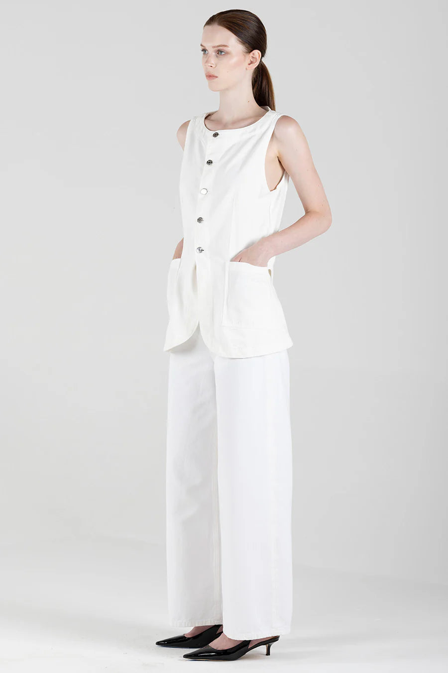 This statement denim shirt mixes modern oversized proportions with utility patch pockets, contrast utility inspired top stitching and rivet trim highlights.