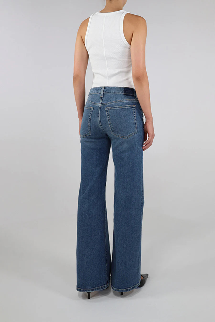 Romi features a lower rise with a softly fitted hip and a chic, dramatic wide leg that creates a cool French girl vibe.